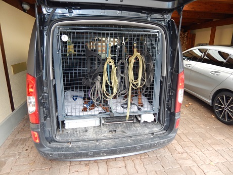 Hundegerecht ausgestattete Fahrzeuge mit Trenn- und Heckgitter oder Hundebox, genügend Stauraum für das benötigte Zubehör und optimal natürlich mit Klimaanlage und Standheizung für die kalten Tage.