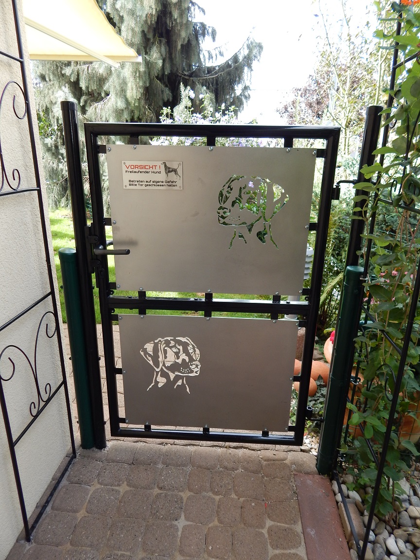 Eingezäuntes Grundstück mit entsprechend hohem Zaun und Tore nach innen öffnend. Tore mit 1 Meter Höhe werden von Dobermännern locker übersprungen, wenn sich auf der anderen Seite etwas interessantes zeigt.