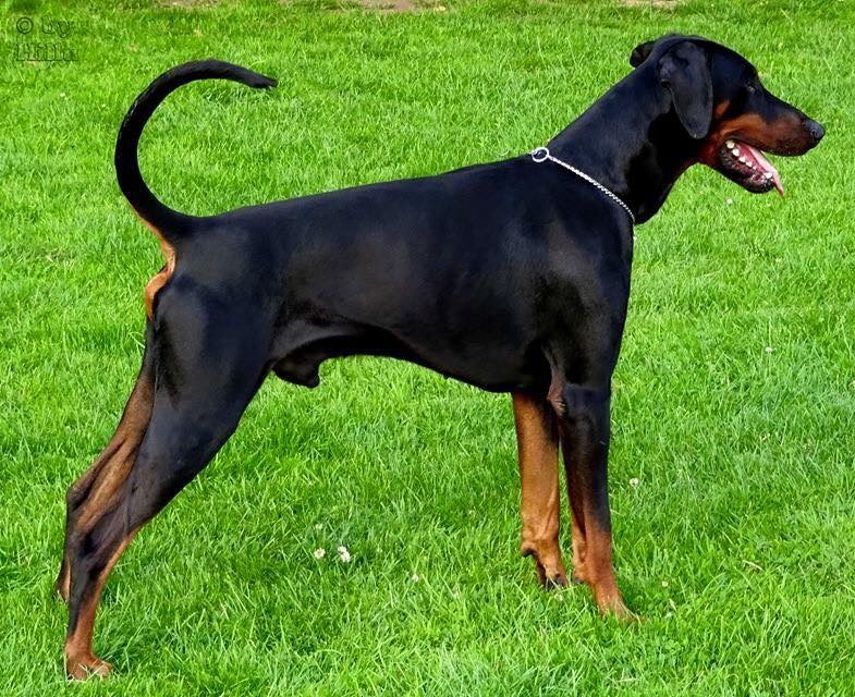 Als letztgeborener Welpe erblickte Ayleen das Licht der Welt. Von Beginn an konnten wir jeden Schritt ihrer Entwicklung mitverfolgen. Sie hat sich zu einer sehr sicheren, freundlichen und kraftvollen Hündin entwickelt. Mit ihrer offenen Art meistert sie Alltagssituationen ohne Schwierigkeiten. Sie sieht ihre Hauptaufgabe darin Haus und Grundstück zu bewachen. Dieser sich selber gestellten Aufgabe geht sie hingebungsvoll und fleissig nach. Das hat zur Folge, dass alles was zu sehen ist, konsequent verbellt wird. Mit Kindern und jeglichen Artgenossen versteht sie sich ausgezeichnet. Auf dem Hundeplatz arbeitet sie mit grosser Freude und Ausdauer. Ayleen ist durch ihre Freundlichkeit und Aufgeschlossenheit der ideale Familienhund im alltäglichen Leben. An der Swiss Dogshow 2019 erreichte Ayleen dreimal die Platzierung „Vorzüglich“ und damit die Auszeichnung „Ausstellungs-Champion“. Nach bestandener BH/VT Prüfung im September 2020 absolvierte sie die ZTP (Zuchttauglichkeitsprüfung) im November 2020 mit der Qualifikation „Vorzüglich“. Am 14.11.2021 absolvierte sie zusätzlich die ZTP beim Dobermann-Verein e.V. in Stennweiler - Deutschland, mit der Bestnote V1A. Damit hat sie und allfällige Nachkommen die Zuchtzulassung auch in der EU. Die Untersuchungen und regelmässigen 24 Stunden EKG zeigen keinerlei gesundheitliche Beeinträchtigungen. Ayleen mittlerweile sechsjährig, wird erfolgreich im Sport geführt. Sie arbeitet auf dem Hundeplatz und an den Prüfungen mit vollem Eifer. Im Alltag hat sie einen gesunden Wachinstinkt, ein sehr offenes Wesen und ist dabei immer eine angenehme Begleiterin. |