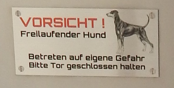Eingezäuntes Grundstück mit entsprechend hohem Zaun und Tore nach innen öffnend. Tore mit 1 Meter Höhe werden von Dobermännern locker übersprungen, wenn sich auf der anderen Seite etwas interessantes zeigt.
